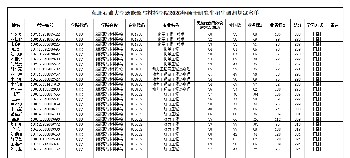 新能源与材料学院2026年硕士研究生招生调剂复试名单(第一轮)